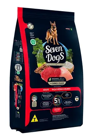 Seven Dogs Adulto MG 5 EM 1 Carne e Frango (18Kg)